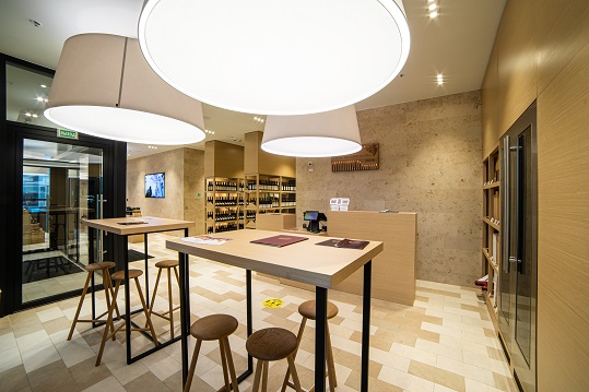 Бутик на Чкаловском бульваре, д. 6к1, ЖК Примавера, где можно не только совершить покупки, но и выпить бокал вина и перекусить, удобно расположившись в мягких креслах за столиком.