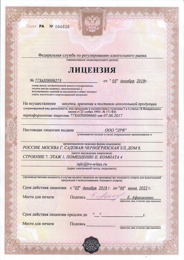 (У Вашей организации нет алкогольной лицензии)